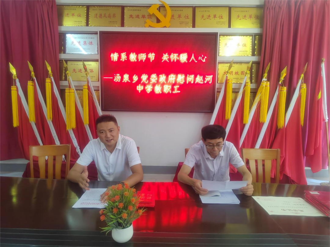 “三尺讲台存日月,一支粉笔写春秋。”在第39个教师节来临之际,9月8日,汤泉乡政府、人大主要负责同志,乡党委分管负责同志在中心学校负责同志陪同下分别到各中小学进行节日慰问。