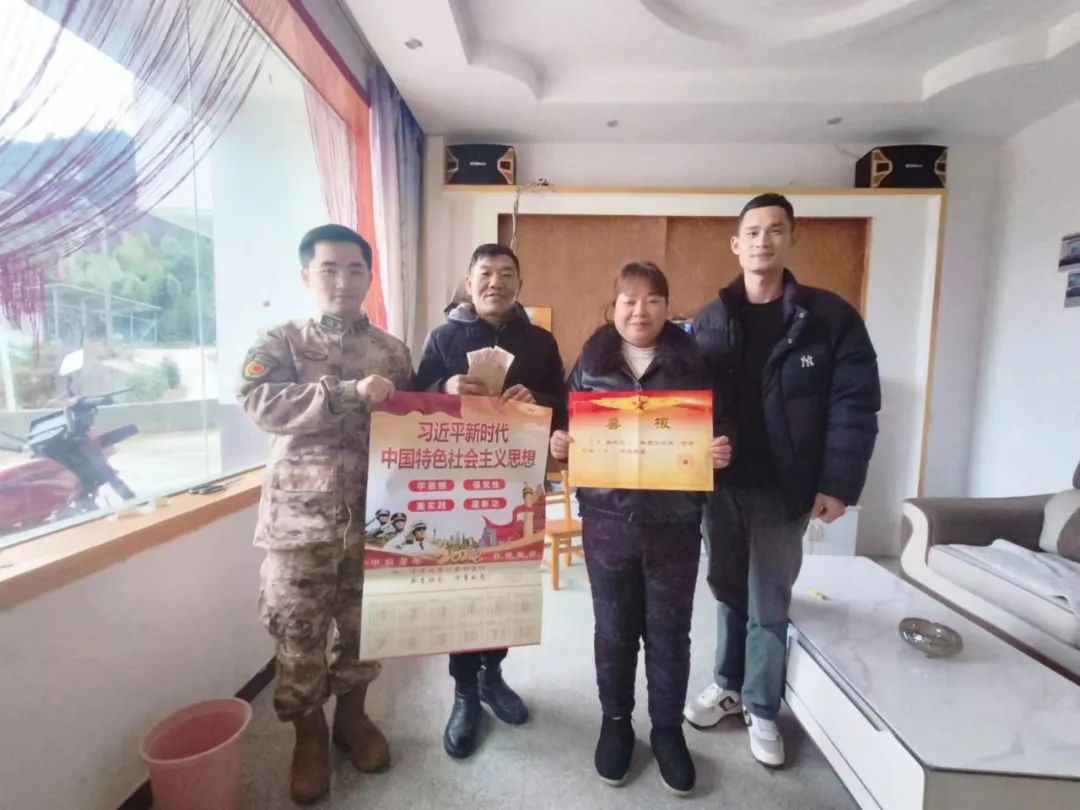 首先,慰问组来到黄岗村现役军人家中,送上了其在部队的立功喜报,和其家属亲切交谈,详细了解他在部队的表现和工作情况,鼓励他在部队安心服役,为国防事业贡献自己的力量。随后,慰问组一行到困难退役军人、参战参试老兵家中,与其亲切交谈,详细了解他们的身体状况和家庭情况,叮嘱他们注意保重身体,感谢他们为党和国家作出的贡献,并送上慰问金和慰问品,向他们致以节日的问候和祝福。退役老兵接过慰问金时,激动地说:“感谢党和政府及各级领导的关心”。