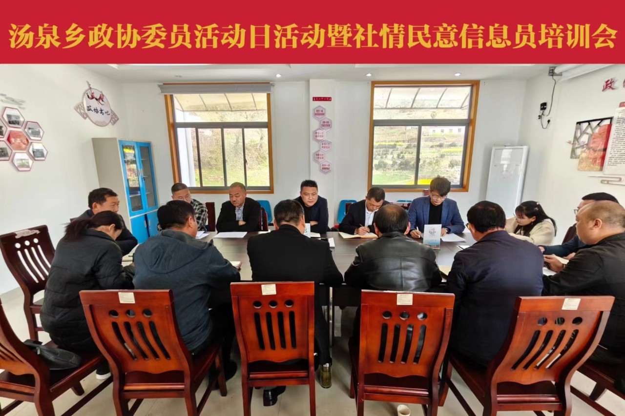 3月21日,汤泉乡政协联络组积极组织政协委员开展“委员活动日”活动暨社情民意信息员培训会,汤泉乡政府主要负责人、住乡县政协委员、各村书记参会。