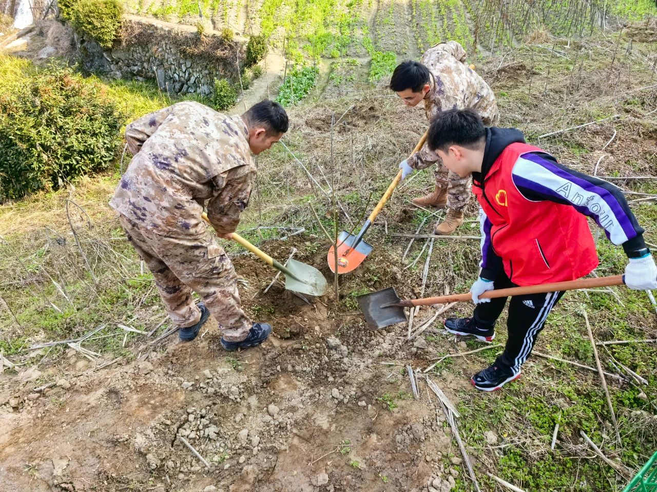 活动现场,退役军人们身着统一的服装,精神抖擞,展现出了军人特有的风采。他们分工合作,有的挥锹铲土,有的扶正树苗,有的培土浇水,每一个环节都一丝不苟。经过大家的共同努力,一棵棵新栽的树苗在春风中摇曳,为汤泉乡增添了一片新绿。