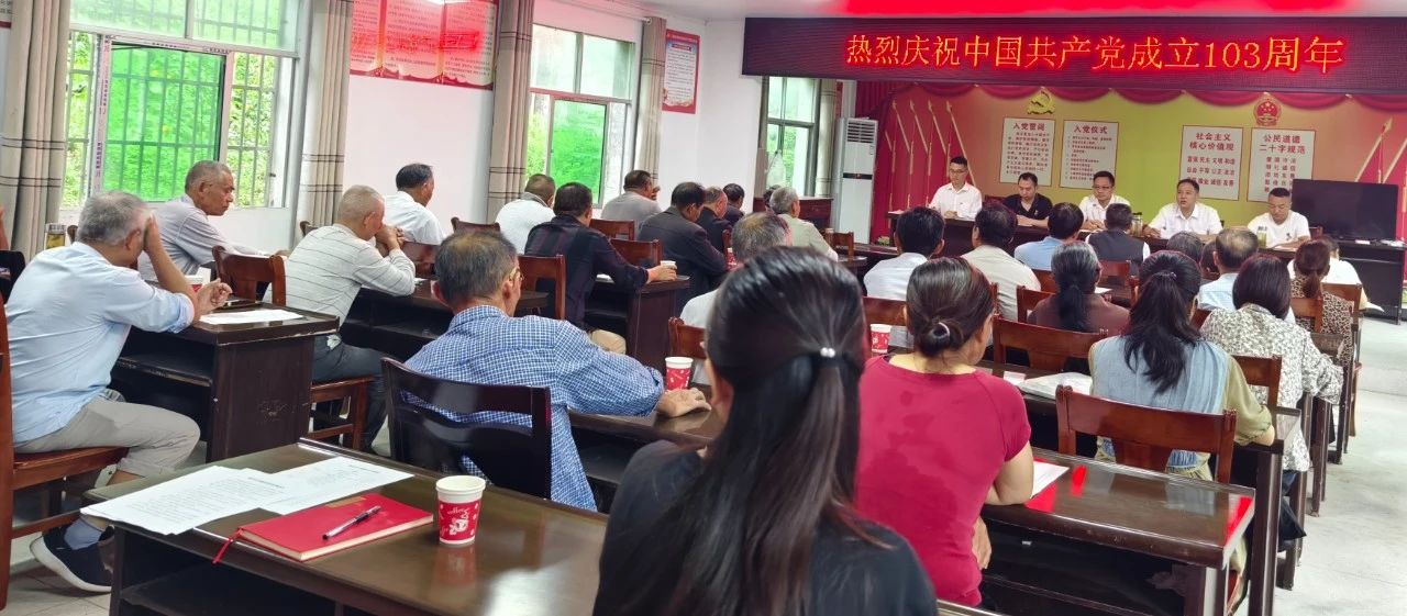 为庆祝中国共产党成立103周年,弘扬伟大建党精神,切实推动党纪学习教育走深走实,增强广大党员的光荣感和使命感,7月1日上午,黄岗村召开庆祝建党103周年党员大会。