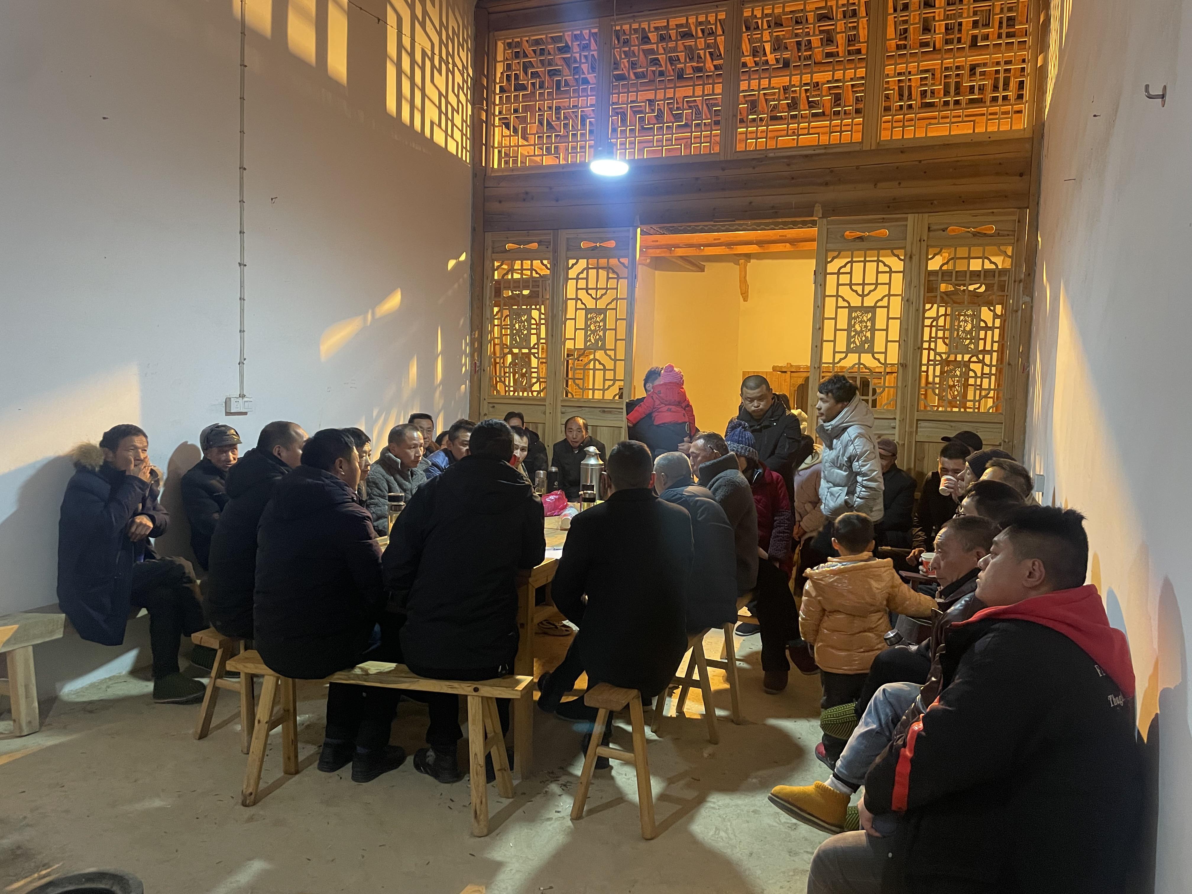 2023年1月25日,乡、村干部在苗石村油坊组召开中心村建设座谈会,群众干部积极交流,推进乡村振兴。