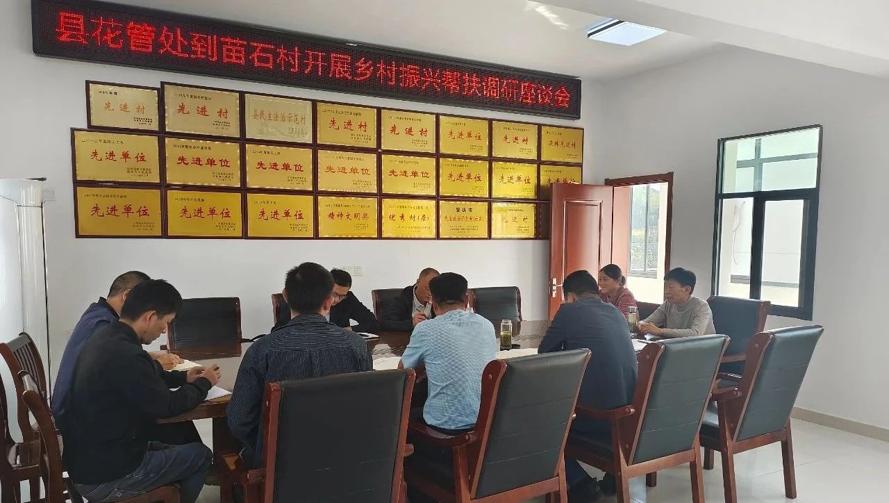 精准对接 深化帮扶?;嵘?,村两委负责人和驻村工作队队长对苗石村基本村情、产业发展、项目建设等作了详细汇报,这种精准对接,有助于县花管处针对苗石村的实际情况,制定更加精准、有效的帮扶措施,从而更好地推动苗石村的全面发展。