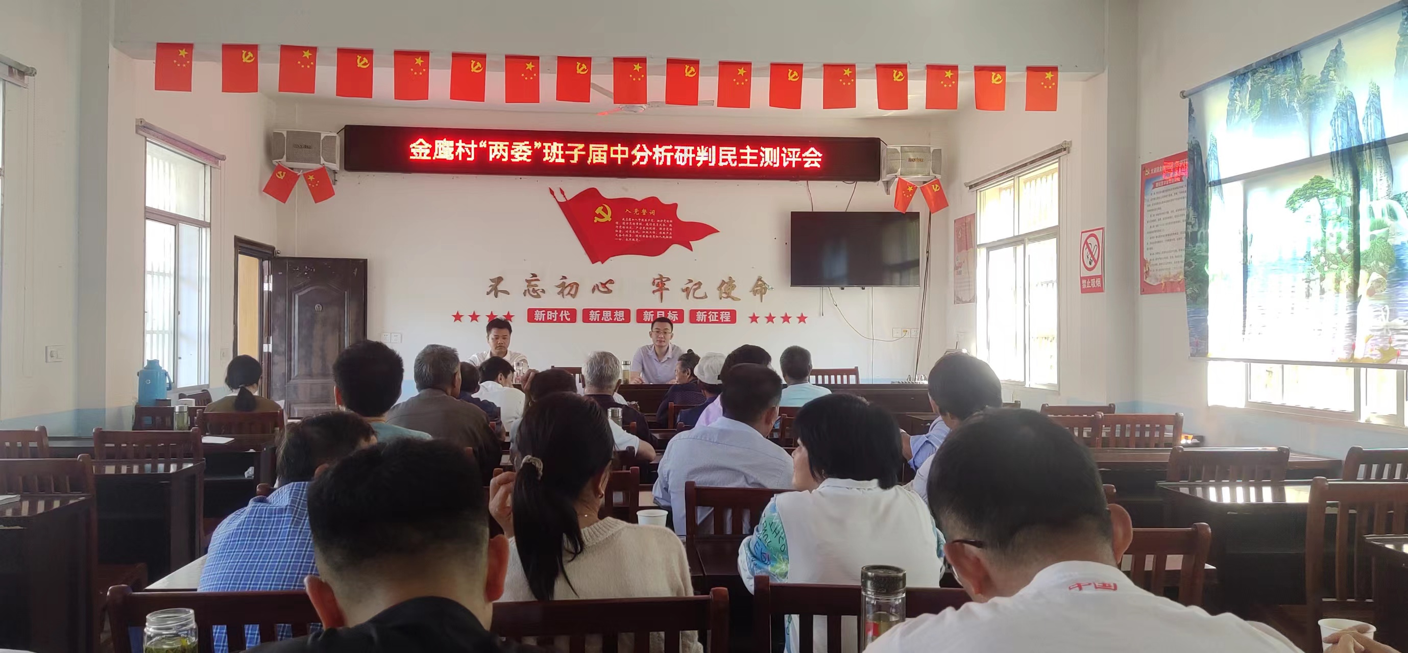 2023年6月9日,金鹰村召开两委班子届中分析研判民主测评会?;嵘献苤榧羌娲逦嶂魅巫隽税嘧邮鲋昂透鋈耸鲋啊6怨ヒ荒臧胧奔涞墓ぷ鹘辛讼低车母爬?。让党员群众充分的了解村两委换届以来所开展的工作。党员群众也对村两委做出了客观公正的评价。通过此次届中测评会,我们村两委也对自身这段时间的工作有了一个更清晰的认识。为下步工作打下了坚实基础。