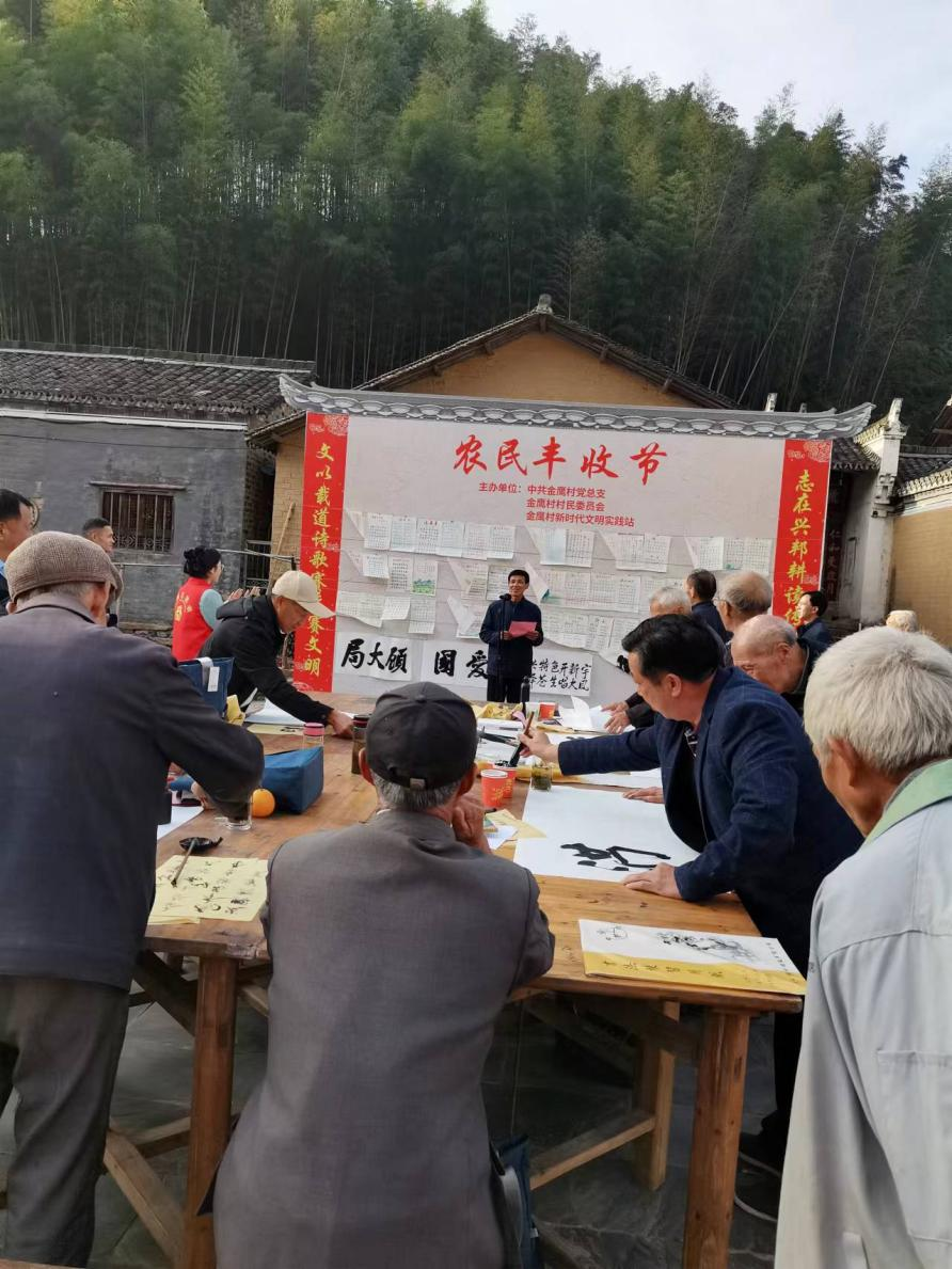 11月8日,由金鹰村党总支、金鹰村村委会、金鹰村文明实践站联合举办的农民丰收节活动在蔡家畈古民居热闹的举行。来自金鹰村的诗词爱好者们,采用现场写诗、吟诗、朗诵等多元化方式演绎诗歌,用诗歌抒发对美好生活的向往与追求。