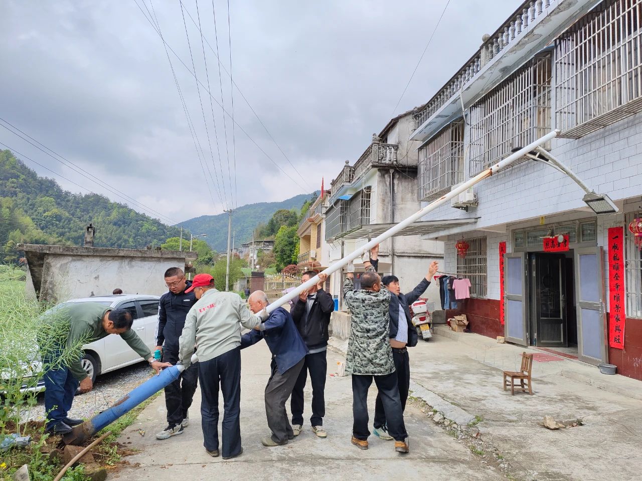 在赵河村芹河片区屋场,村党组织和当地群众正忙着维修道路两旁损坏的路灯。拆卸灯柱、连接线路、组装配件...一番操作下来,一盏盏路灯又如常点亮。