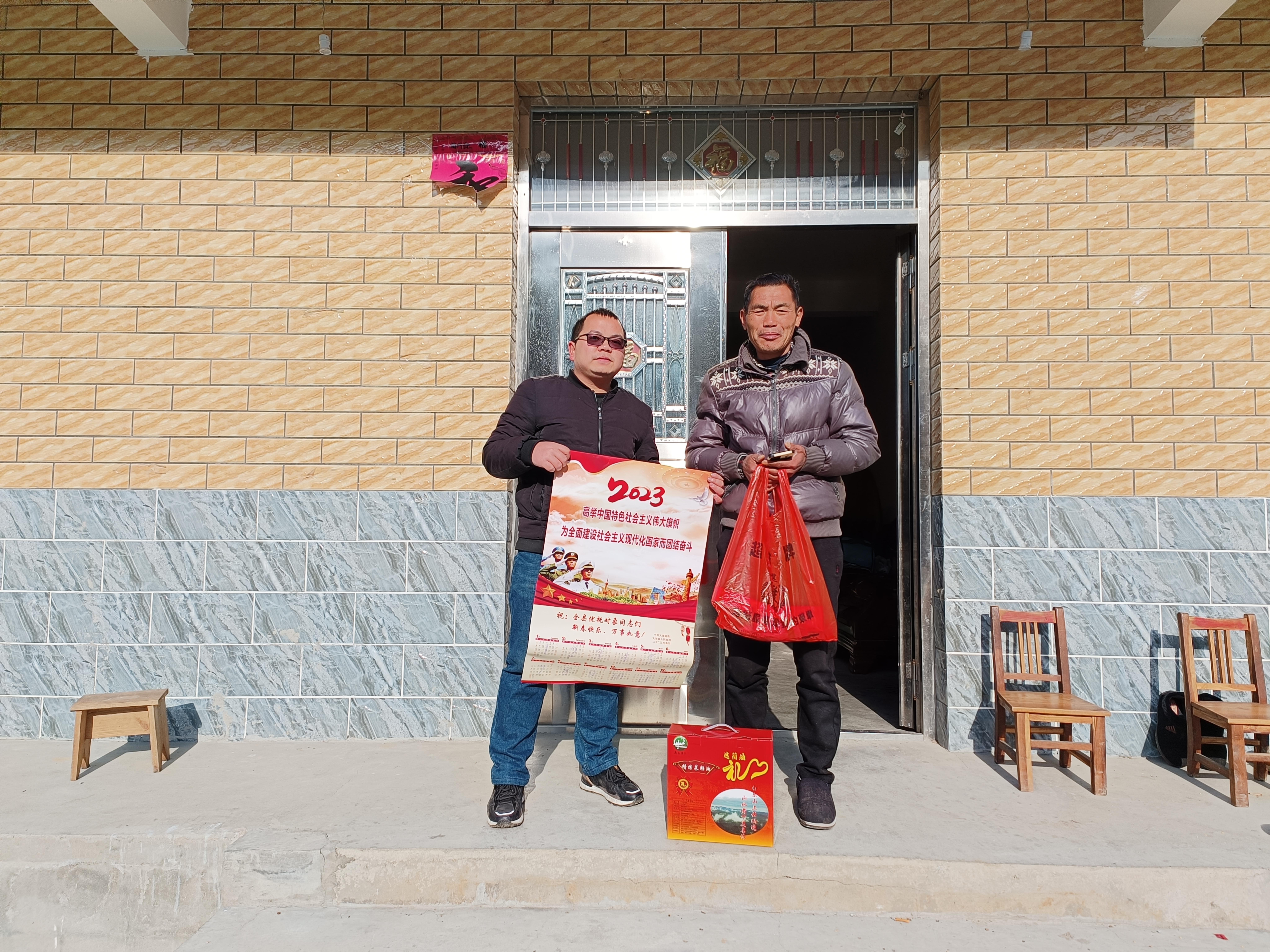 在春节到来之际,黄下村委会慰问退役军人,村委会工作人员一一走访了老兵,向他们致以节日的问候,了解他们的身体状况和生活中遇到的困难,同时给他们送去年画和菜籽油。