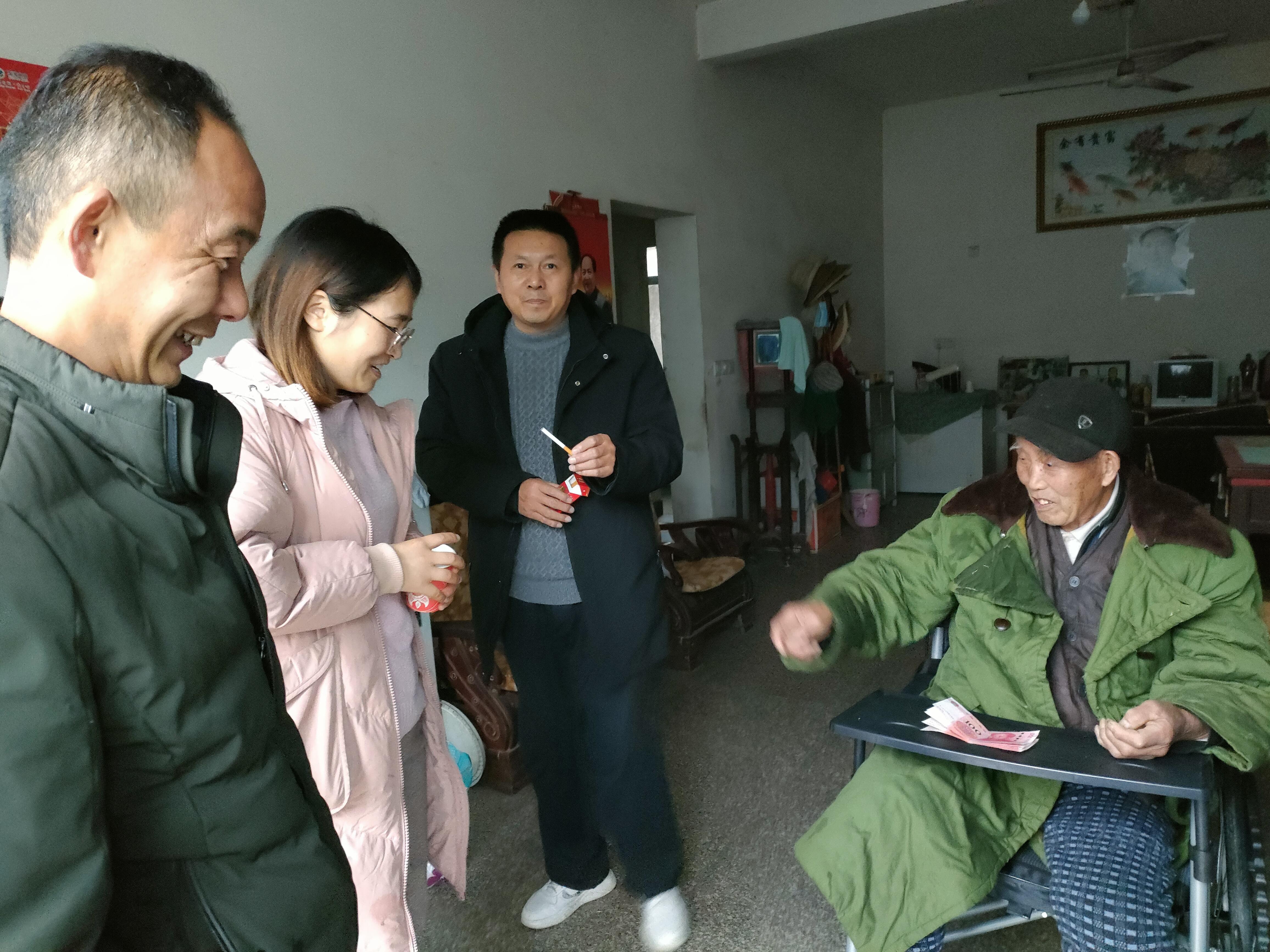 1月12日上午,士畈村驻村工作队、乡蹲村领导、党支部书记入户走访慰问困难群众,送去了党和政府的关怀,并致以节日的问候和美好祝愿!支部书记与群众谈心谈话中,详细询问他们的身体状况和生活中存在的困难,并带去诚挚的关怀和节日的祝福。