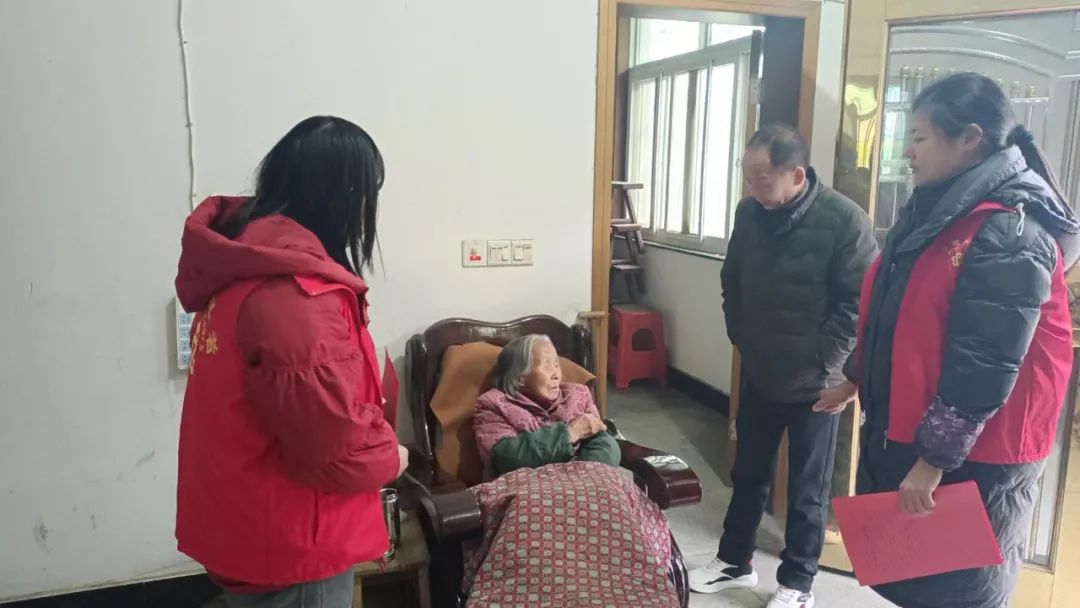 近日寒潮来袭,气温骤降,士畈村妇联与驻村振兴工作队心系辖区独居老人,冒着严寒对辖区内独居老人开展了走访慰问活动。