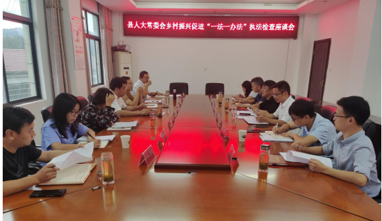 会上,检查组听取了寺前镇产业发展现状、人才队伍建设、乡风文明建设、人居环境整治等主要做法及成效、当下存在的问题、下一步工作打算等情况汇报,与寺前镇党委、政府、人大主要负责同志、人大代表、相关负责人等就贯彻落实乡村振兴促进法“一法一办法”过程中所遇到的难点问题进行讨论交流,并提出指导性意见。