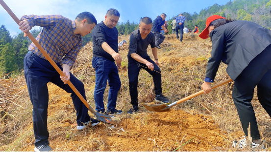 春来植新绿,静待成荫时,3月12日,县审计局关工委一行到罗溪村开展义务植树活动。