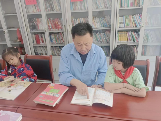 活动中,关工委“五老”根据孩子的阅读爱好和需求为孩子提供伴读服务。他们有的与孩子共度《十万个为什么》,启发孩子们动脑筋思考;有的一起欣赏《养成好习惯》绘本,鼓励孩子养成阅读绘本的好习惯;有的为孩子们讲述了红色经典历史《中国工农红军长征史》,厚植孩子们的爱国爱党情怀,做新时代接班人。