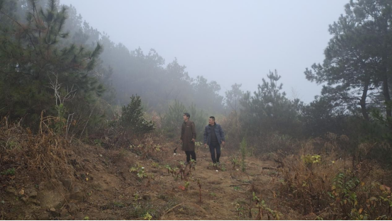 冬日的清晨,寒风凛冽,小池镇枫铺村村级林长带领村内其他林长一起来到村里海拔最高的李岭林场巡护。他们穿梭在山林地头,各个山场情况尽收眼底,哪怕一丝可疑的烟雾也逃不过他们的眼睛。
