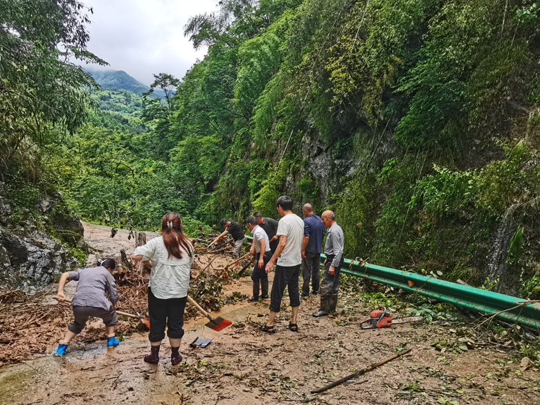 受近期强降雨天气影响,小池镇域内出现较大汛情。为有效应对灾情,红星村两委和第九批驻村工作队持续对重点河道、山体及交通要道开展拉网式排查,对已经出现山体滑坡和水毁灾情的路段及时放置警示标牌,联系人员器械积极抢修,同时对周边住户和车辆现场引导指挥,确保人民群众的生命财产安全。