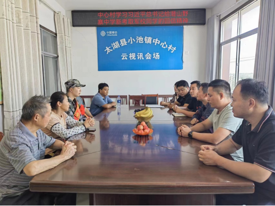 9月11日,中心村组织学习习近平总书记给潜山野寨中学新考取军校同学的回信精神,村两委成员、入伍新兵及新兵家长参加了学习交流会。