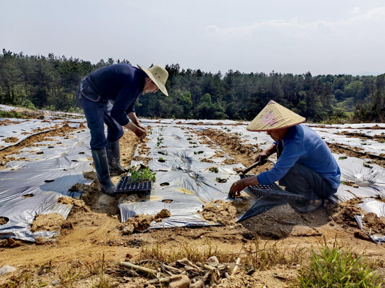 在辣椒种植基地,40多名“临时工”正忙着打窝、放苗、培土、浇水……每一个动作在他们手中都显得格外娴熟,大家分工明确,干劲十足,一道道身影在一垄垄田间地头来回穿梭,尽展一幅“春耕景”。