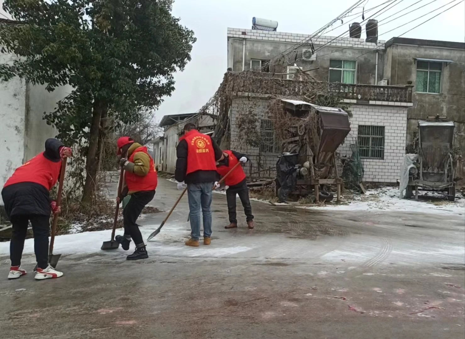 为有效应对低温雨雪冰冻灾害天气,全力做好太湖县低温雨雪冰冻灾害IV级防范应对工作,白庙村组织党员、青年志愿者8人对主干道路和重要场所进行铲雪除冰,对重要交通路段进行除雪清障,全力保障道路安全畅通。