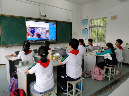 为了培养学生们对太空奥秘探索的兴趣,在心中撒下热爱科学的种子,小池镇方兴小学利用课后服务时间组织全体师生观看了“天宫课堂”第四课直播课。