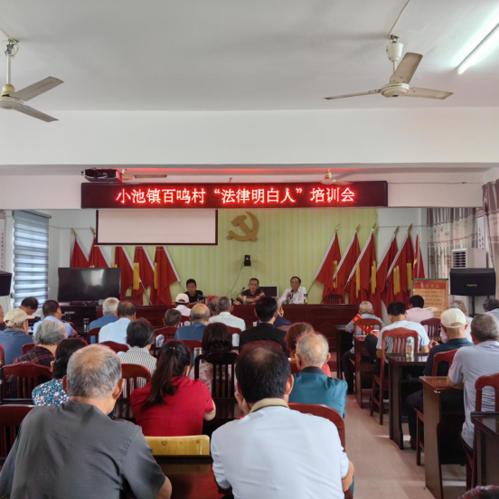 为深入贯彻落实依法治国策略,提高广大群众的法治意识,7月1日,小池镇百鸣村开展了“法律明白人”培训会,为建设法治和美乡村贡献力量。