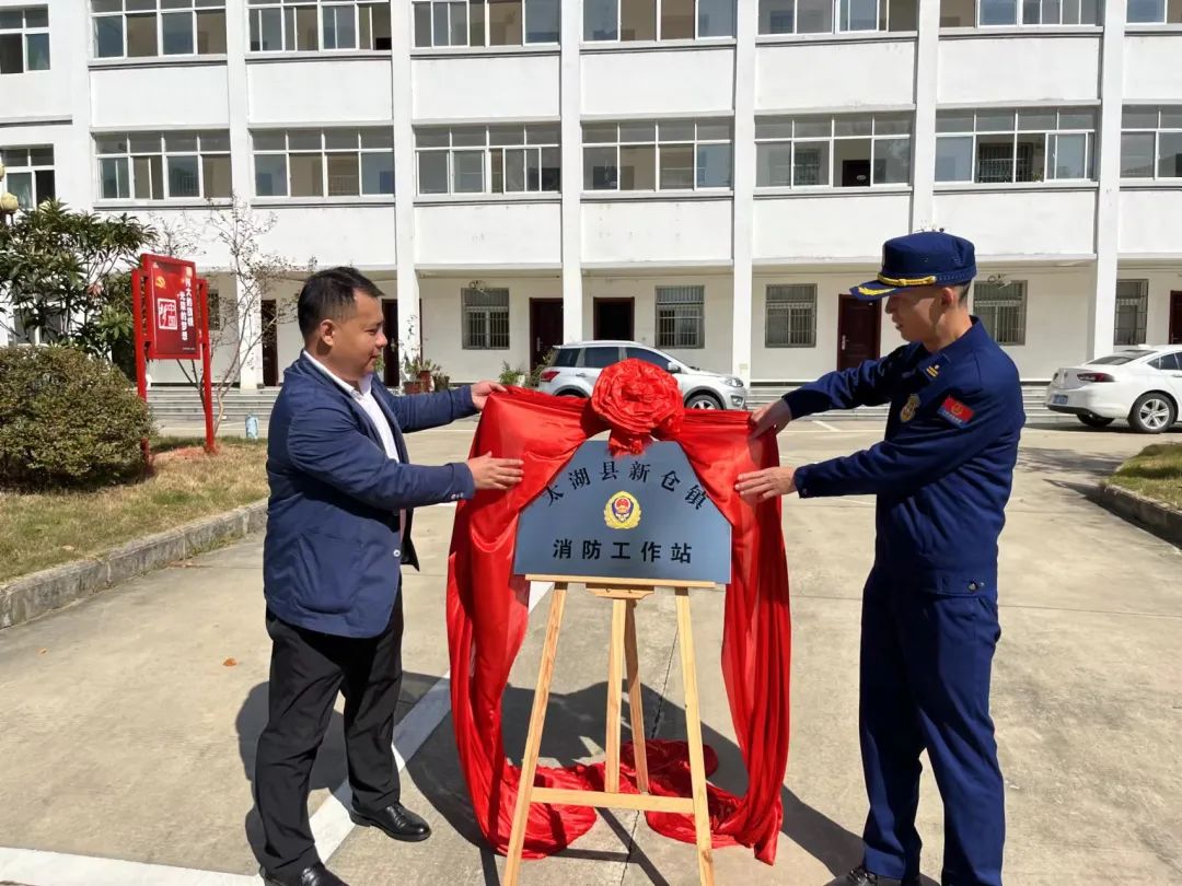 close10月13日,我县首个乡镇新仓镇消防工作站正式挂牌成立。