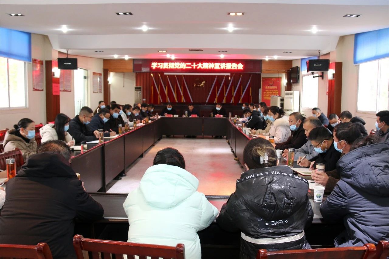 close12月1日上午,县委常委、政法委书记彭林到新仓镇宣讲党的二十大精神,县委政法委副书记余朝应陪同,新仓镇机关党支部全体党员干部参加。