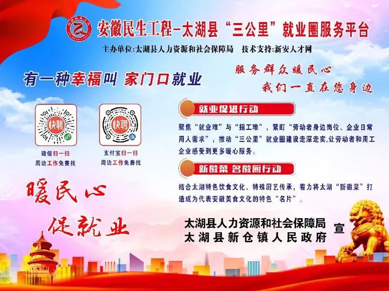 就业是最大的民生工程,是社会稳定的重要保障。劳动者就近就业、充分就业,是安徽省实施“十大暖民心行动”之一“就业促进行动”提出的一项重要目标。它是以社区三公里范围内的劳动者、小微企业为重点服务对象,以实施“三公里”就业圈为抓手,创新“政府主导推动、社会力量参与、线上线下联动”的公共就业服务模式,为企业提供稳定用工服务,促进供需精准对接,促进村民“家门口”就业,确保就业政策落实,就业服务落地,切实增强人民群众的获得感和满意度。