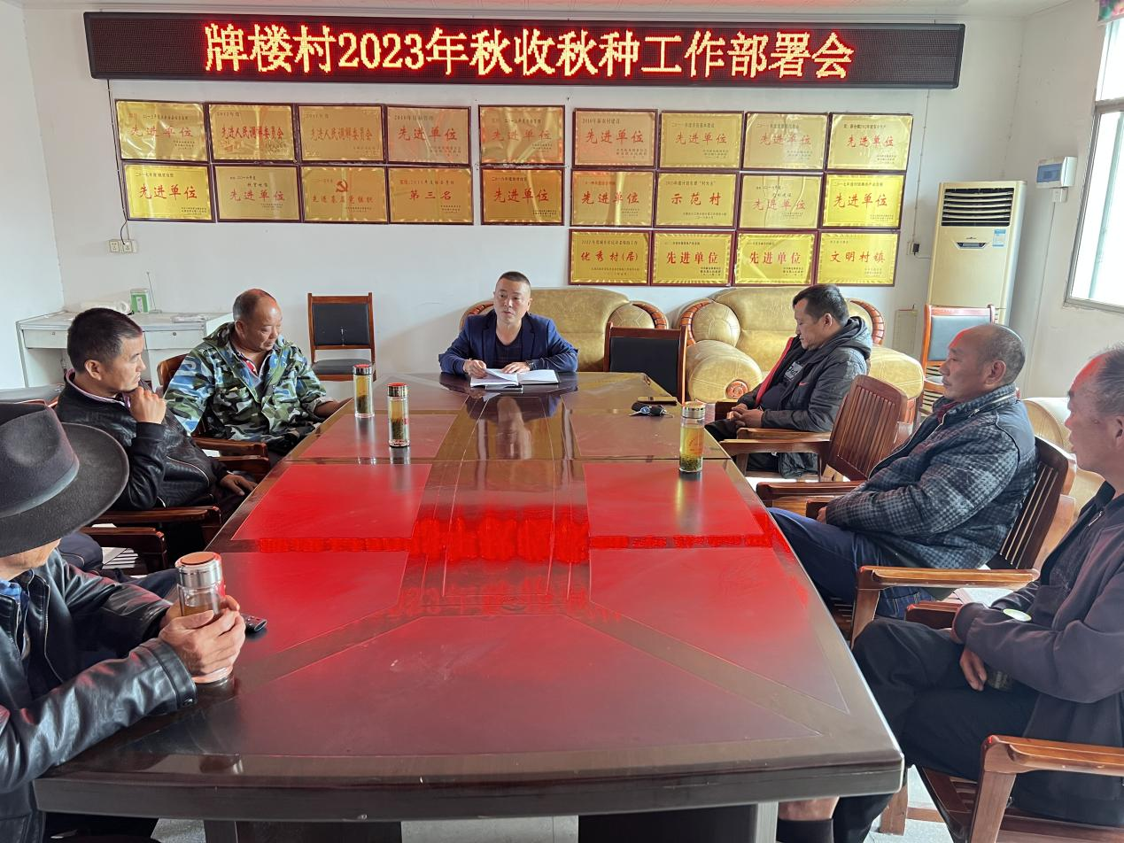 2023年10月12日,牌楼村组织种粮大户召开秋收秋种工作部署会。