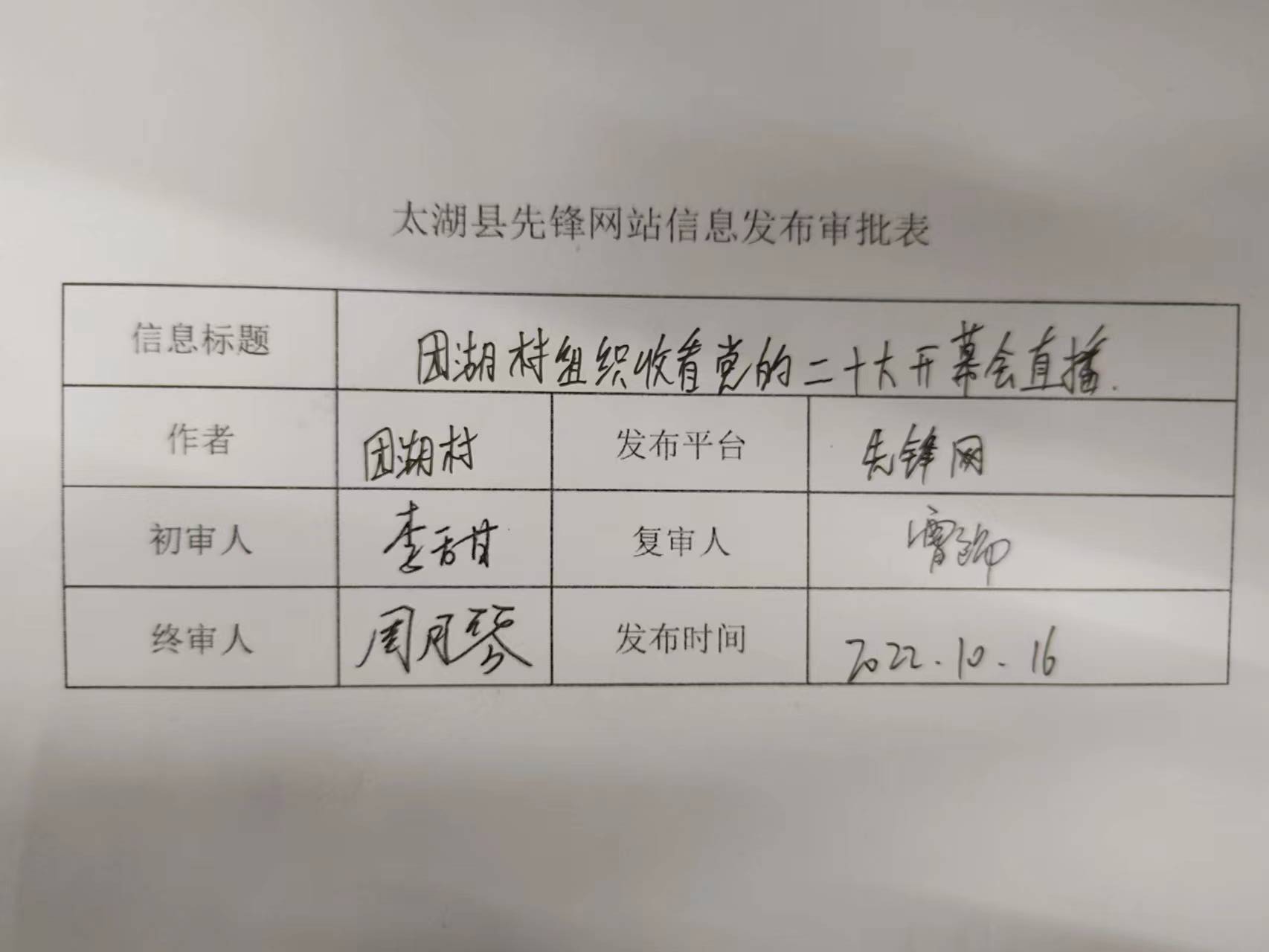 2022年10月16日,团湖村组织村“两委”成员、党小组组长集体收看党的二十大开幕会直播。