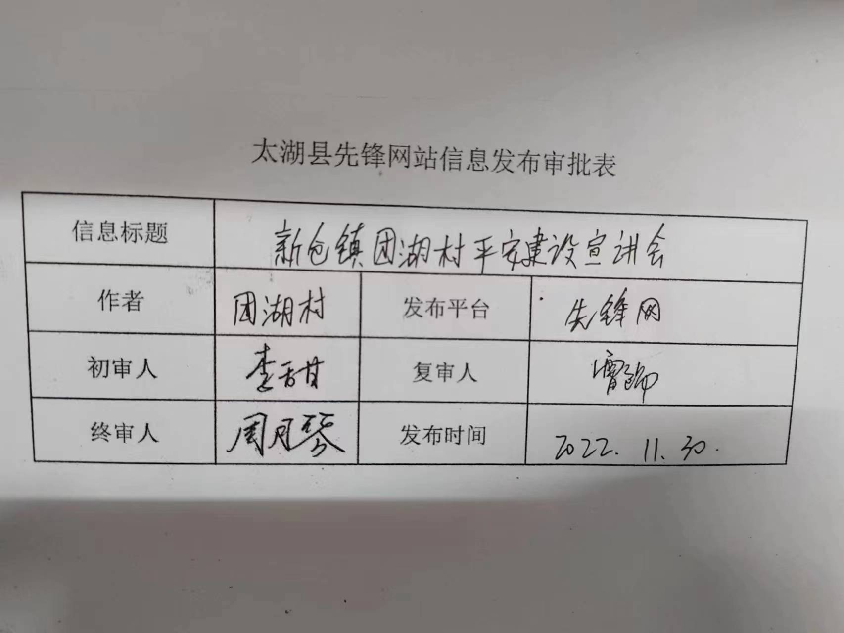 2022年11月30日,团湖村召开平安建设宣讲会。