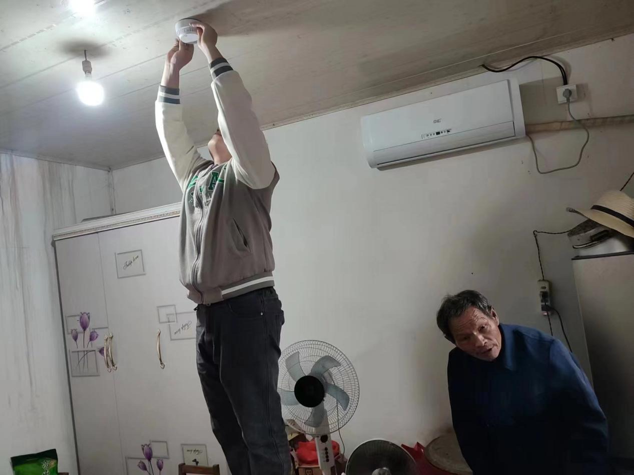 2023年4月12日,香茗山村组织志愿者看望村内独居老人,并为他们安装烟雾报警器,保障其安全。