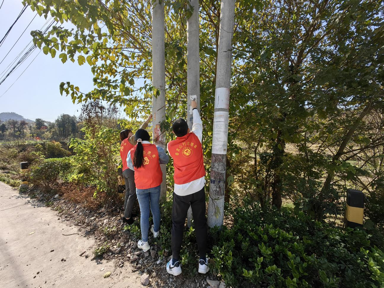 2023年11月16日,香茗山村开展整洁太湖活动,组织人员做好道路垃圾清扫,电线杆上小广告清理等。