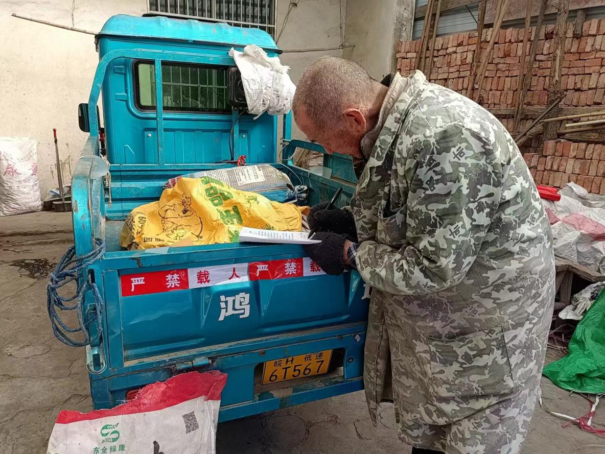 2024年1月20日,香茗山村组织村“两委”入户宣传交通安全,让三轮车驾驶人签订安全承诺书。