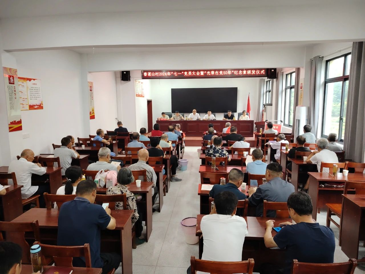 为庆祝中国共产党成立103周年,进一步增强党员凝聚力,激发党员担当活力,强党纪树新风,在“七一”当天,香茗山村隆重召开庆祝中国共产党成立103周年暨“光荣在党50年”表彰大会。