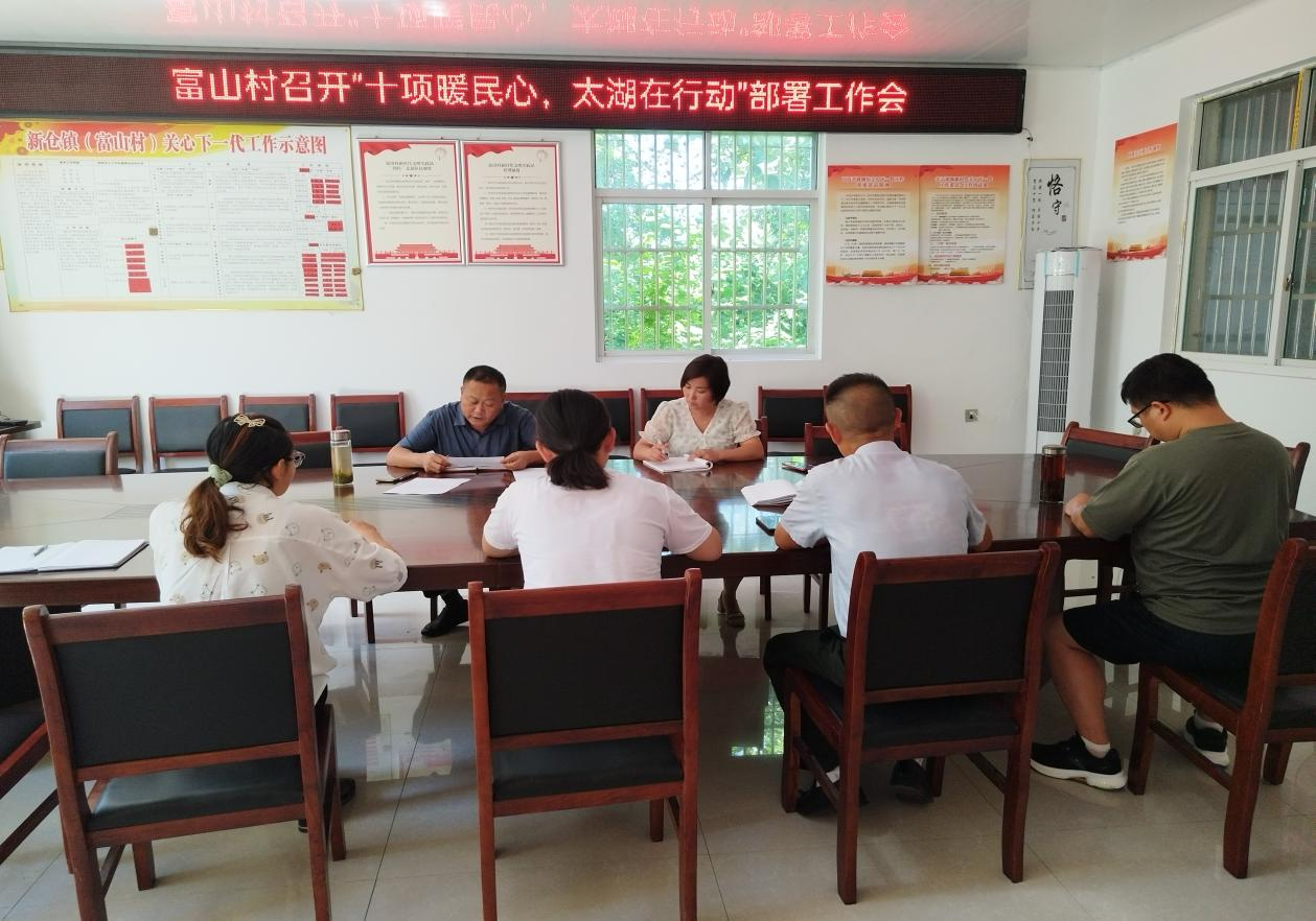 8月3日,富山村召开“十项暖民心,太湖在行动”工作部署会,党总支书记主持会议,其他“两委”成员参会。