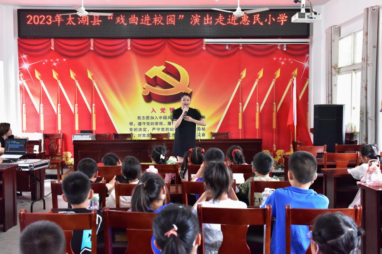 2023年6月12日,由县委宣传部、文旅体局、教育局、财政局主办,太湖县黄梅戏演艺有限公司承办,惠民村关工委协办的太湖县“戏曲进校园”活动走进惠民小学。