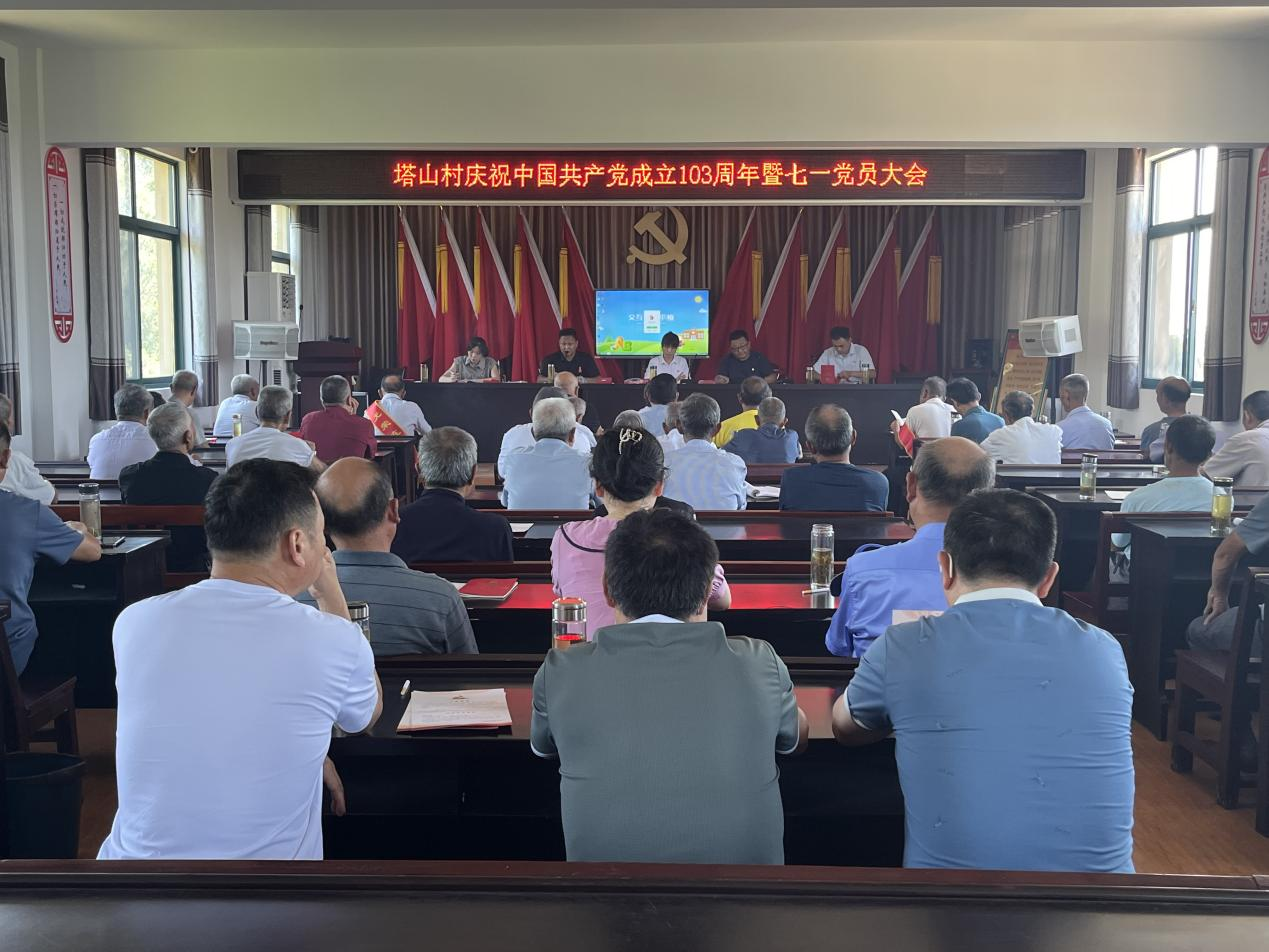 为庆祝建党103周年,充分发挥基层党组织的战斗堡垒作用,7月4日上午,新仓镇塔山村隆重召开庆祝中国共产党成立103周年暨“七一”表彰大会,村两委、全体党员参加。