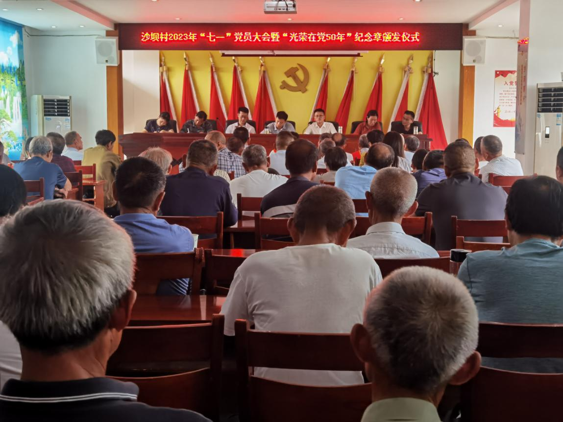 2023年7月8日,沙坝村党总支召开庆祝中国共产党成立102周年党员大会,党建指导员、驻村工作队、选调生、村“两委”、全体党员参会。
