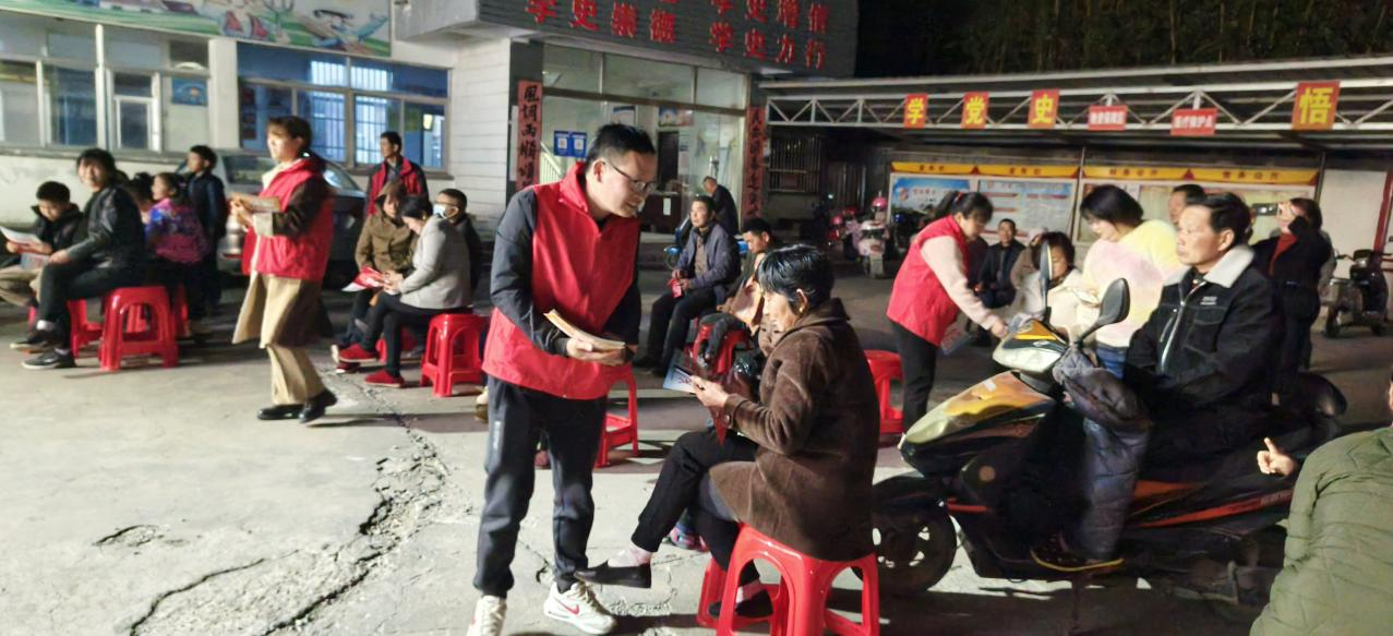 村“两委”成员纷纷出动,以“送戏下乡”活动为载体,将城乡居民养老保险补缴、“三公里”就业圈等工作进行现场宣传,让村民在看戏的同时也能了解村级当前重点工作,营造了乡风文明浓厚氛围。