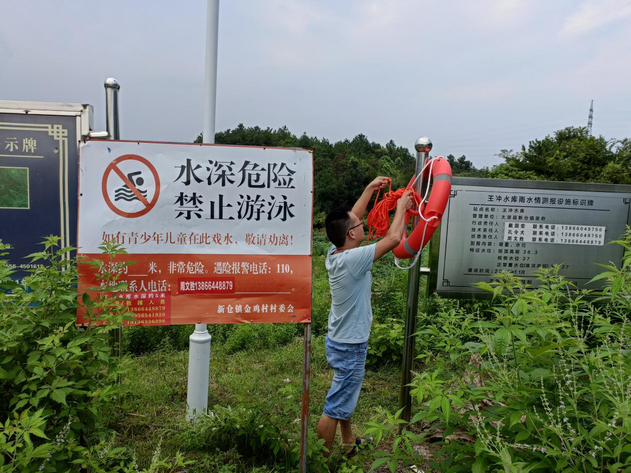 2023年8月5日,金鸡村开展重点水域安全排查活动,对是否设置醒目的安全警示牌、是否配备了明显标识的救生竿、救生圈和救生绳等方面进行了细致的实地查看,切实消除安全隐患,谨防溺水事故的发生。