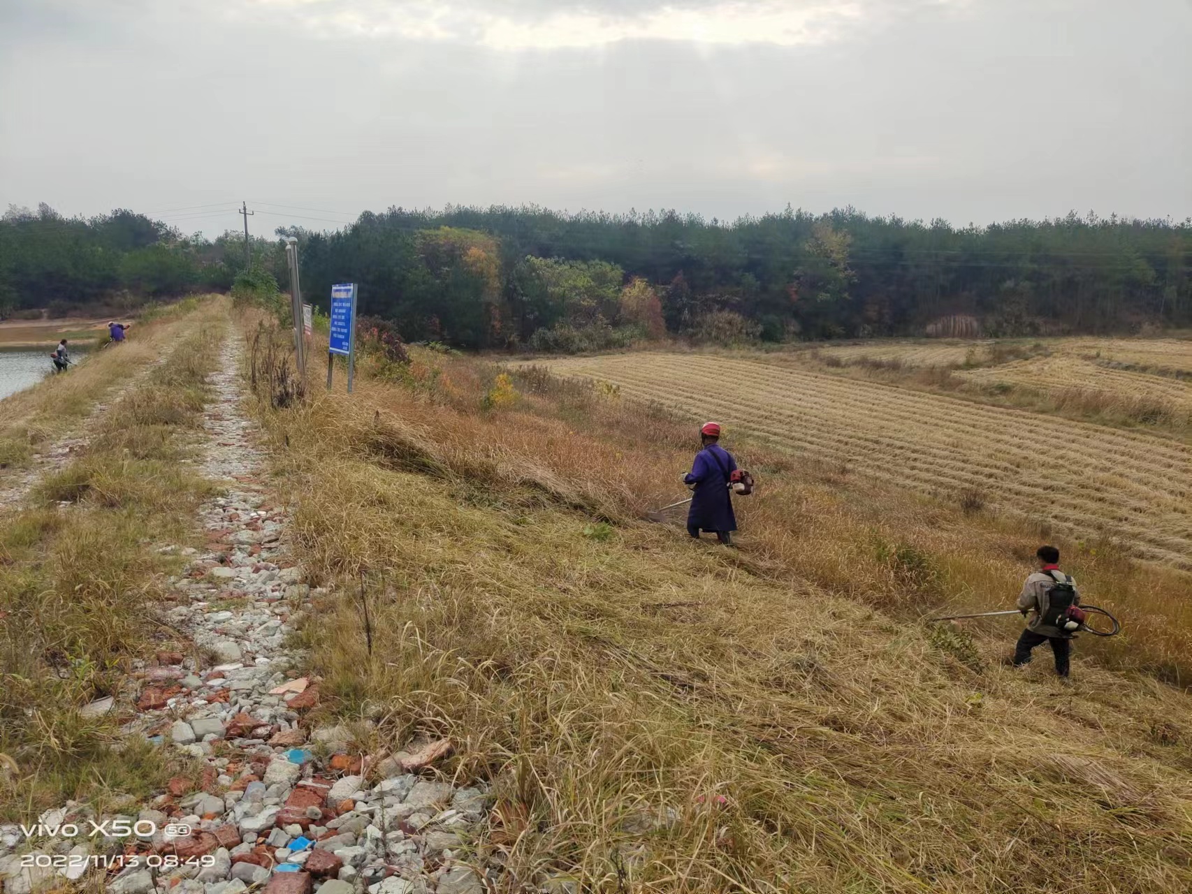 2022年11月13日花园村组织环卫工对高园水库两边杂草进行清除。