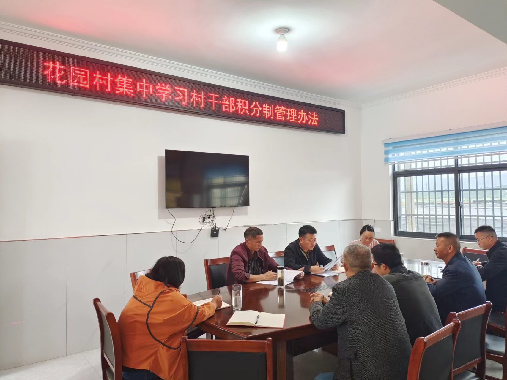 2023年5月11日花园村集中学习《村干部积分制管理办法》。