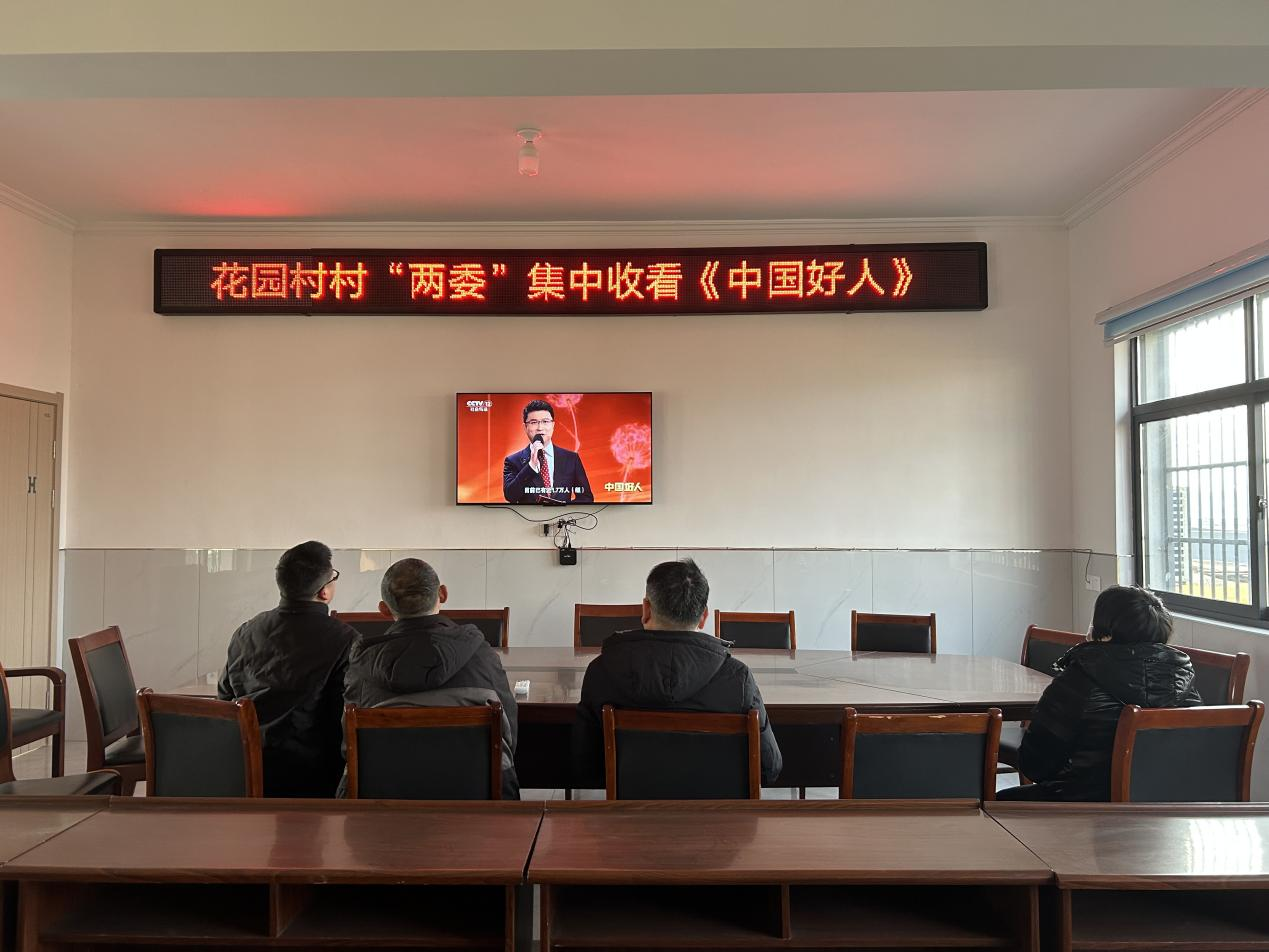 2024年1月3日花园村“两委”成员集中观看《中国好人》。