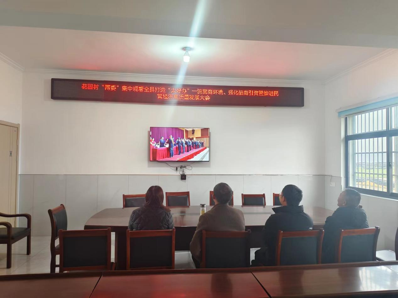 2024年2月19日,花园村“两委”集中观看全县打造“太好办”一流营商环境、强化招商引资暨推进民营经济高质量发展大会。