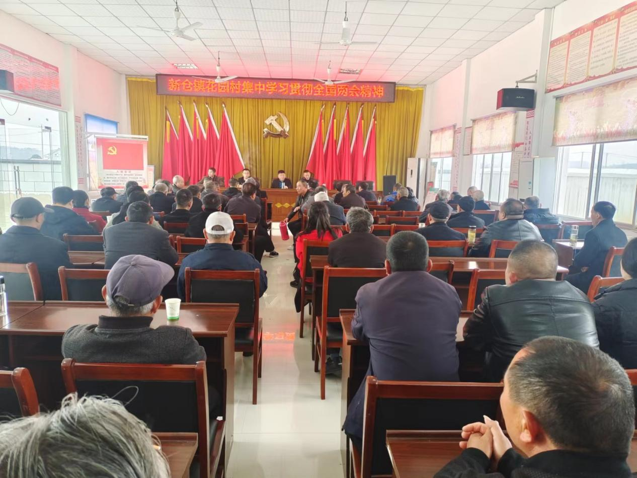 3月16日花园村召开党员大会集中学习贯彻全国两会精神。