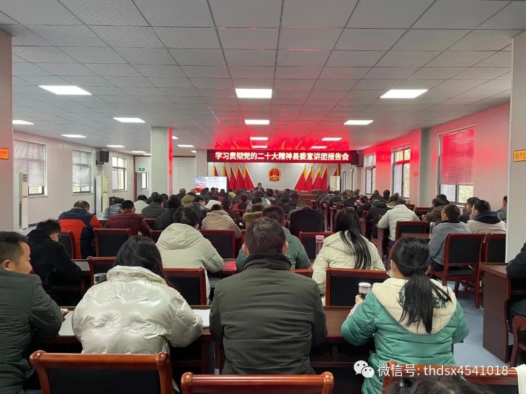 报告会上,宣讲人紧扣习近平总书记“五个牢牢把握”重要要求和党的二十大报告原文,重点围绕深刻领会党的二十大的重大意义,准确把握党的二十大精神实质,深刻领会过去五年的工作和新时代十年的伟大变革,深刻领会开辟马克思主义中国化时代化新境界,深刻领会中国式现代化的中国特色和本质要求,深刻领会党的二十大作出的新部署新要求,深刻领会坚持党的全面领导和全面从严治党重大部署等方面,对党的二十大精神进行了系统解读和深入阐释。报告会结合全县经济社会各项事业发展实际,既谋长远,又抓当前,要求迅速掀起学习宣传贯彻党的二十大精神的热潮。
