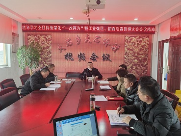 大石岭村学习全县持续深化“一改两为”暨工业强县、招商引资誓师大会会议精神。