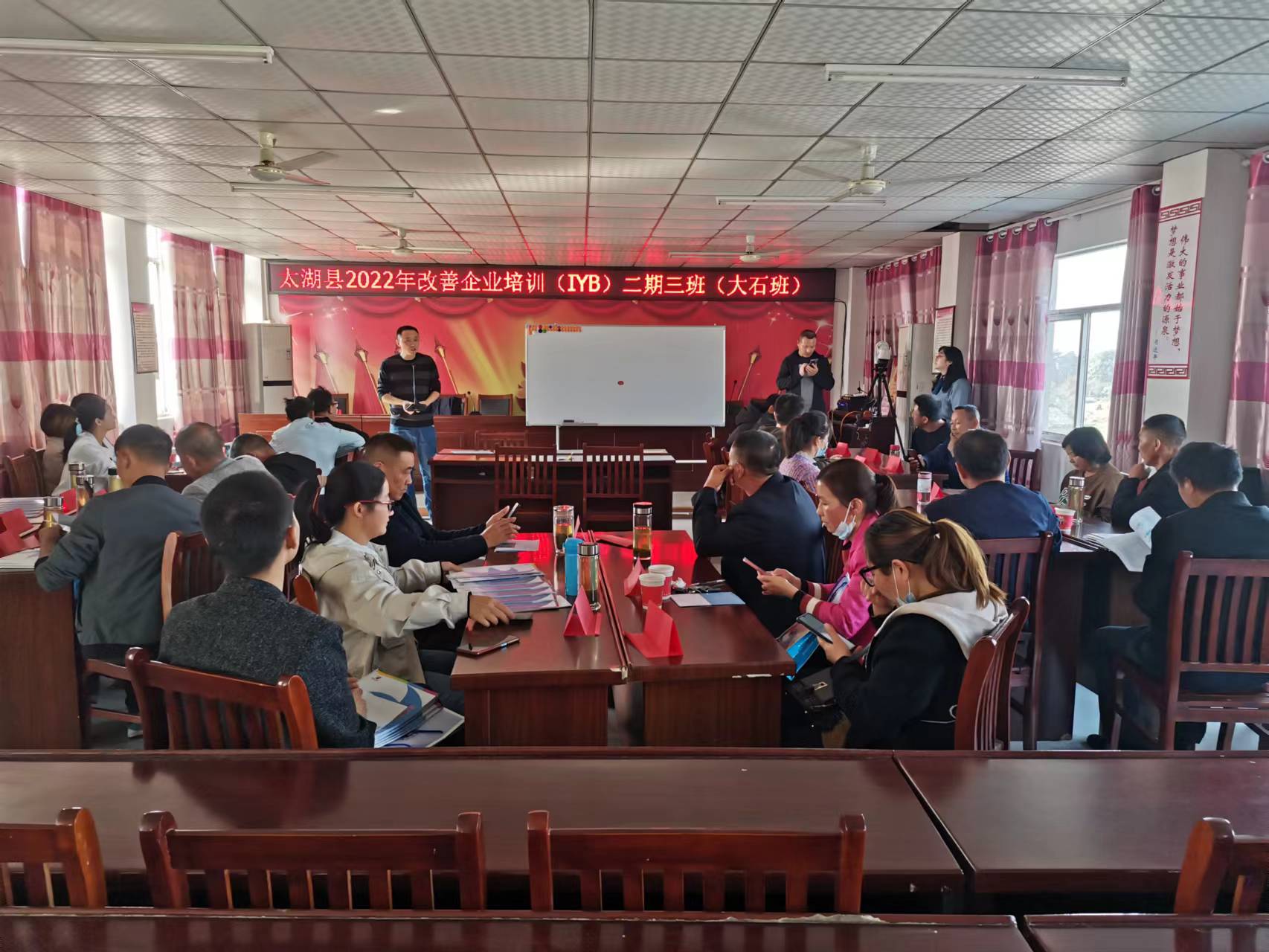 2022年太湖县2022年改善企业培训(IYB)二期三班(大石班)在东湖村举行开班仪式,本期培训班为期5天,全乡共有30余名企业和个体法人参加。