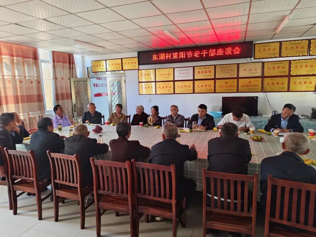 感恩新时代,共话新发展。为深入学习贯彻习近平总书记关于主题教育的重要讲话和重要指示批示精神,值重阳佳节来临之际,东湖村党总支积极组织辖区老党员老干部召开重阳节座谈会,共同学习,共话发展。座谈会上,与会人员一同观看了党性教育纪录片,共同学习了党的二十大报告、《习近平著作选读》《中国共产党章程》等。随后,与会人员还一同讨论了东湖村今后发展的重点工作,为建设秀美东湖贡献了“银发智慧”。