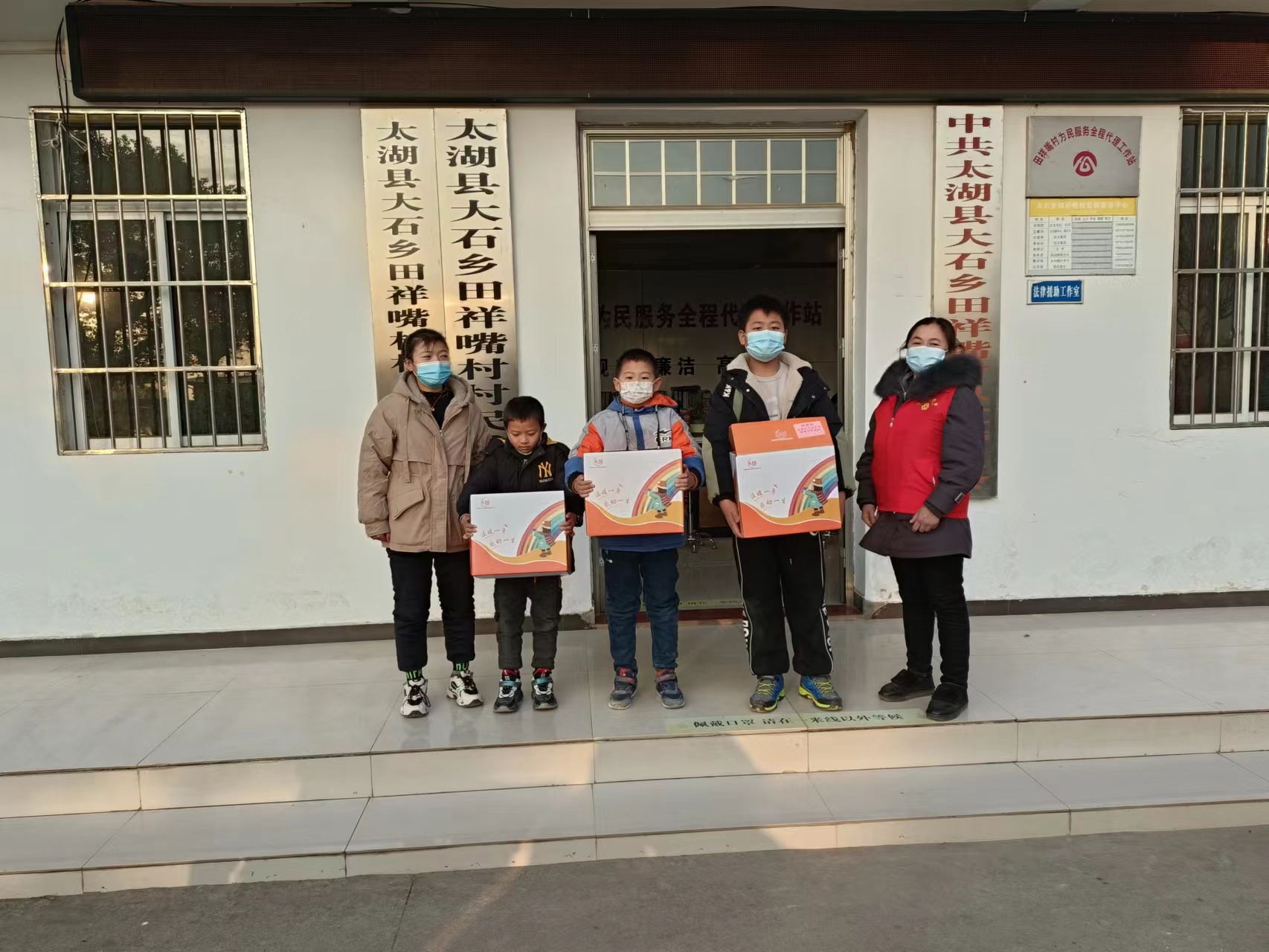 县妇联为田祥嘴村单亲家庭儿童发放助学包。