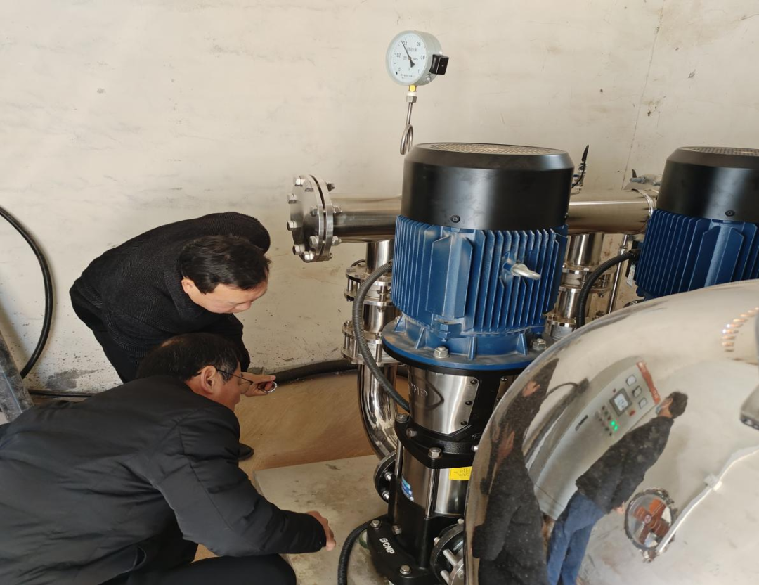 随后,王海平一行视察大石加压站,仔细查看了加压站运行情况。现加压站运行正常,有效地缓解了部分用水户水量小、水压不足等问题。